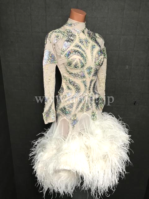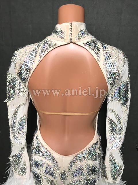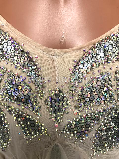白にシルバースパンコールの装飾がキラキラの目立つドレスです。