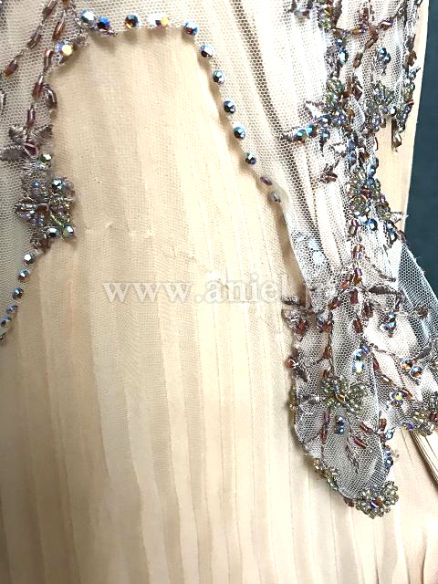 ベージュカラーに繊細なレース生地が素敵なドレス