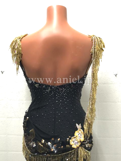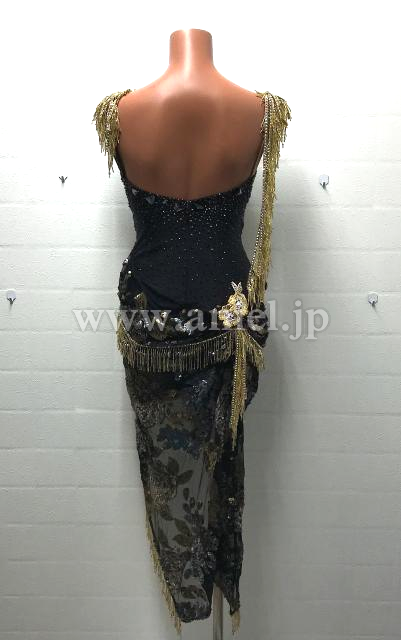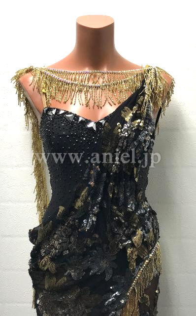 黒とゴールドのロングラテンドレス