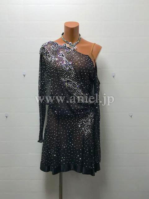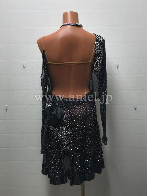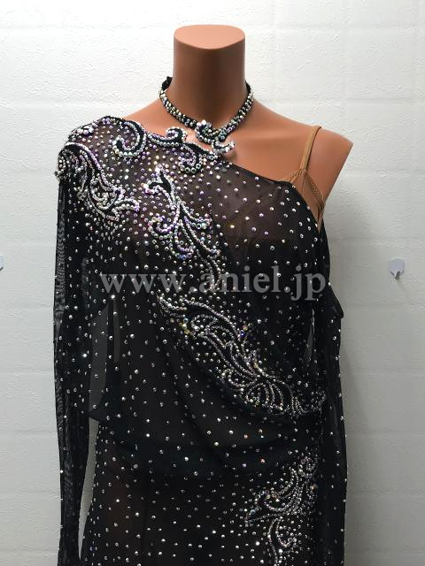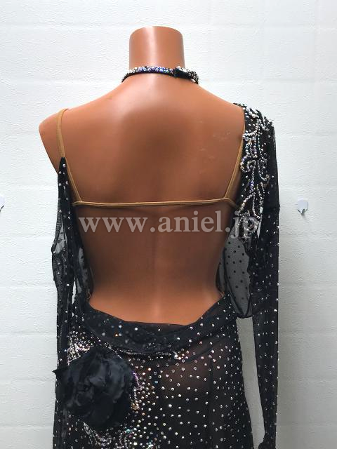 黒のシースルーボディにオーロラストーンがたっぷり飾られよく輝くドレスです。