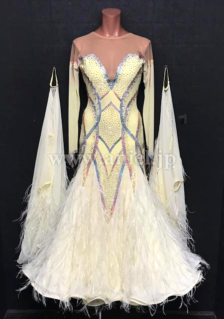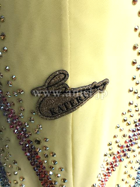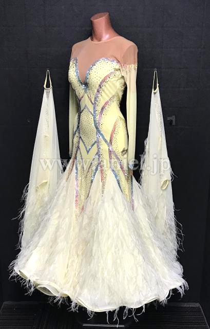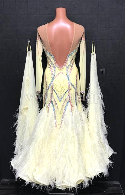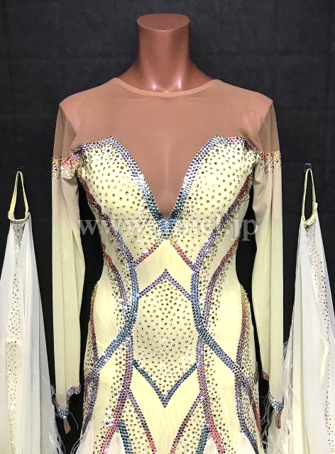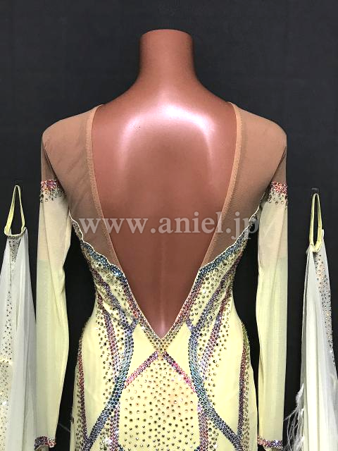 パステルイエローにカラフルなストーンで装飾されたドレス