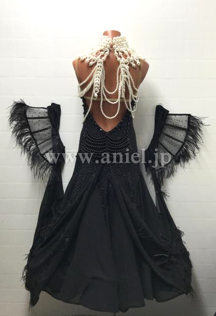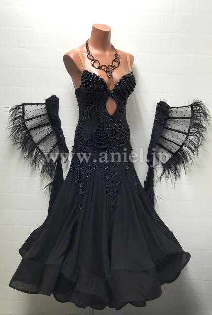 ブラックのパール装飾がシックで大人っぽいデザインの新品ドレスです。