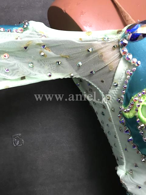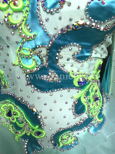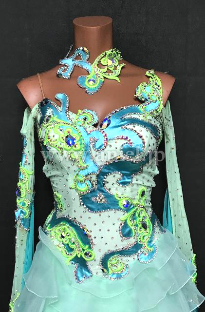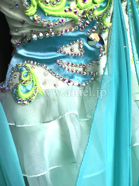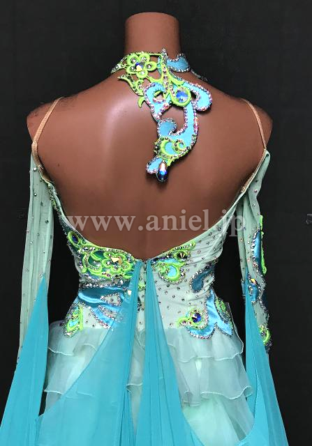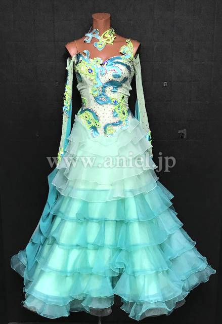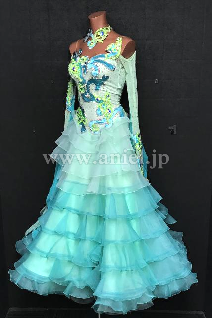 水色とペパーミントカラーオフショルダードレス