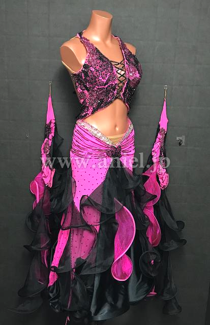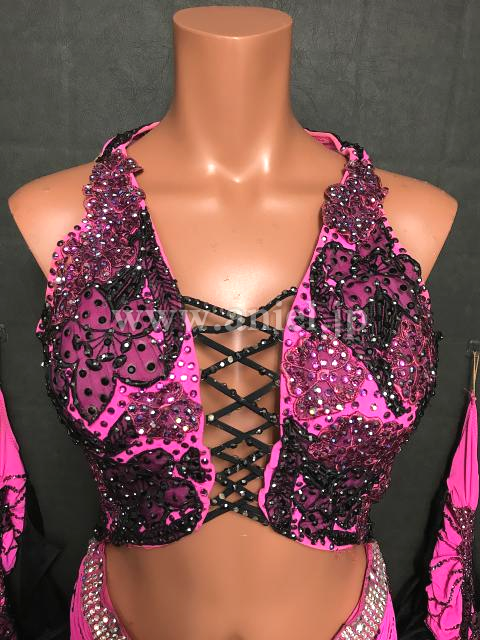 ピンクに黒がセクシーな印象のドレス
