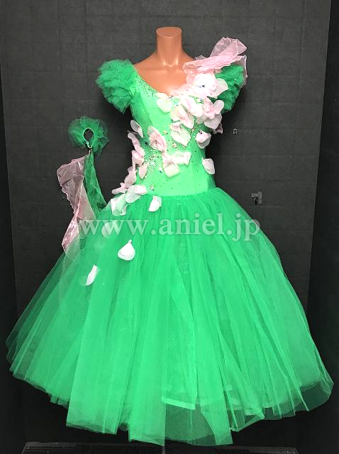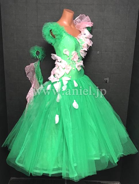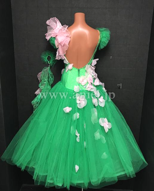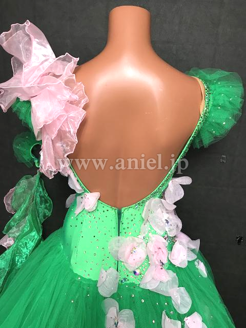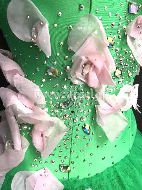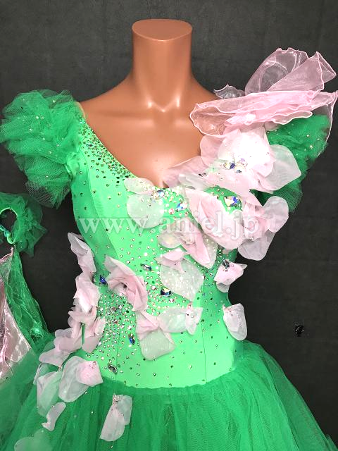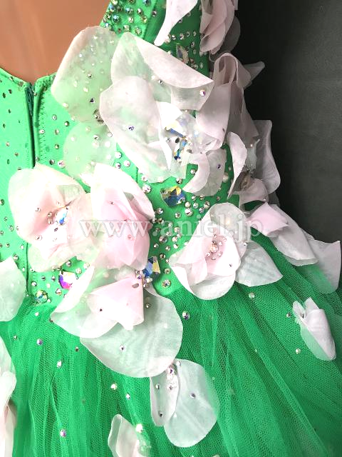 鮮やかなグリーンに柔らかいベビーピンクの素敵なドレス