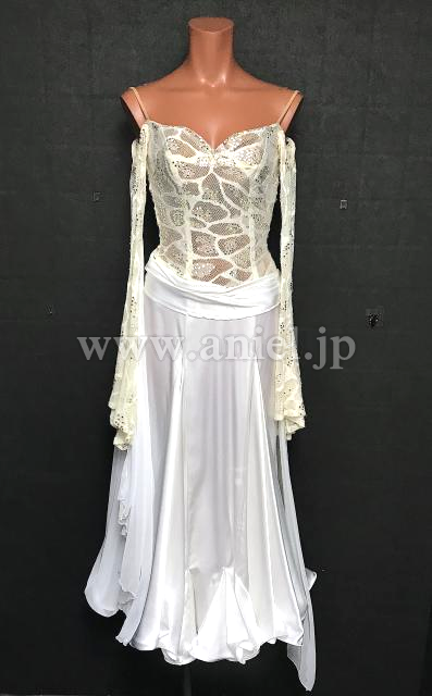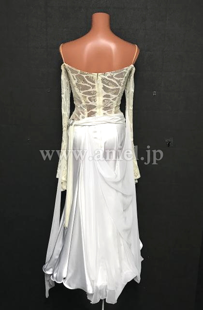 クリームホワイトと白のシンプルなドレス