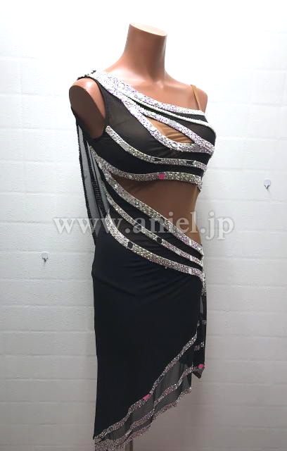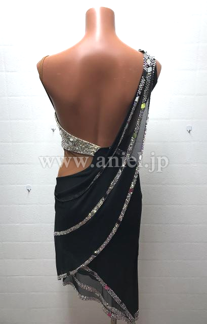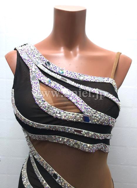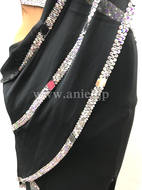 黒にオーロラストーンでラインがデザインされたドレス