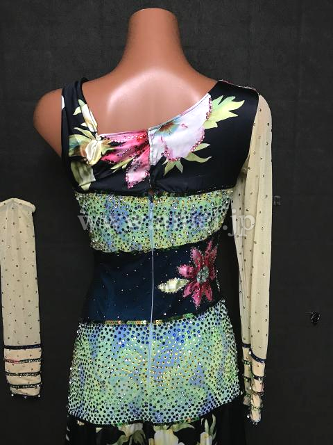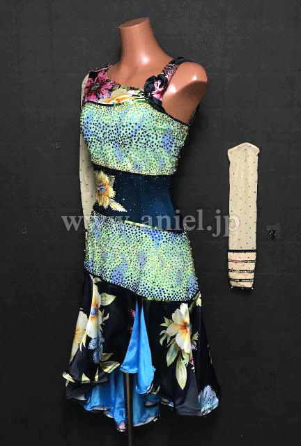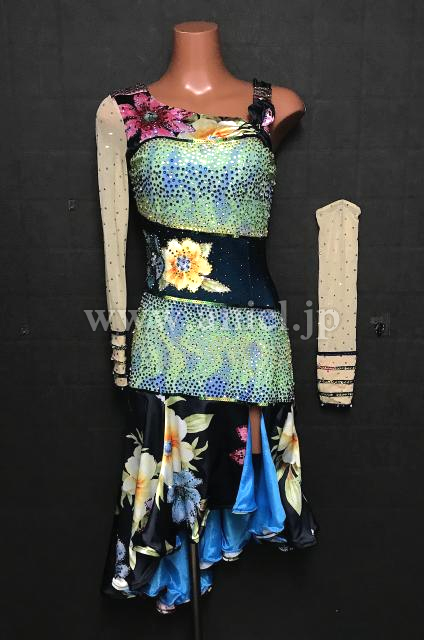 ワンショルダーデザインのカラフルなドレスです