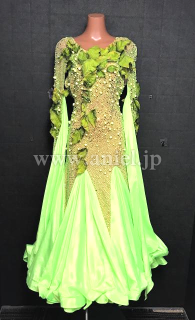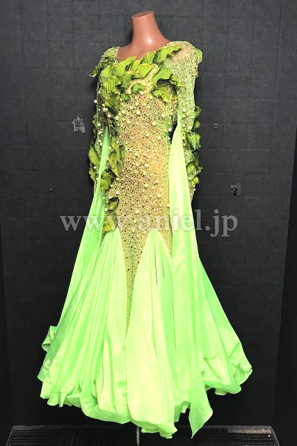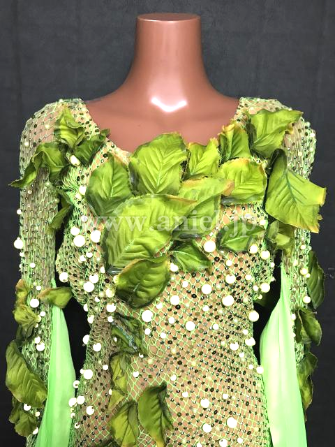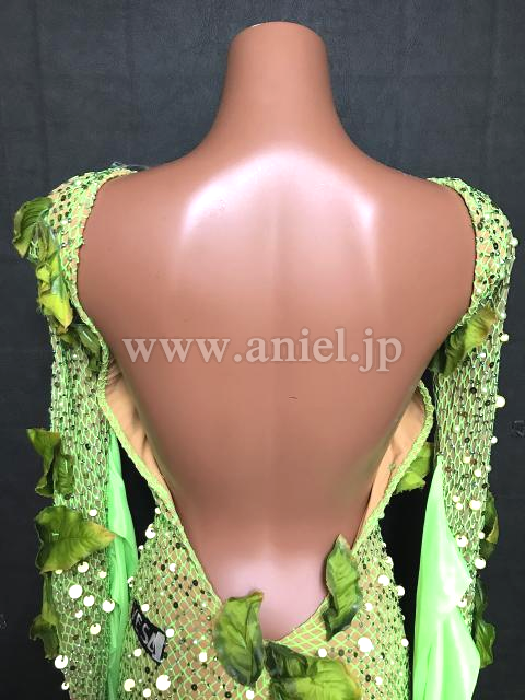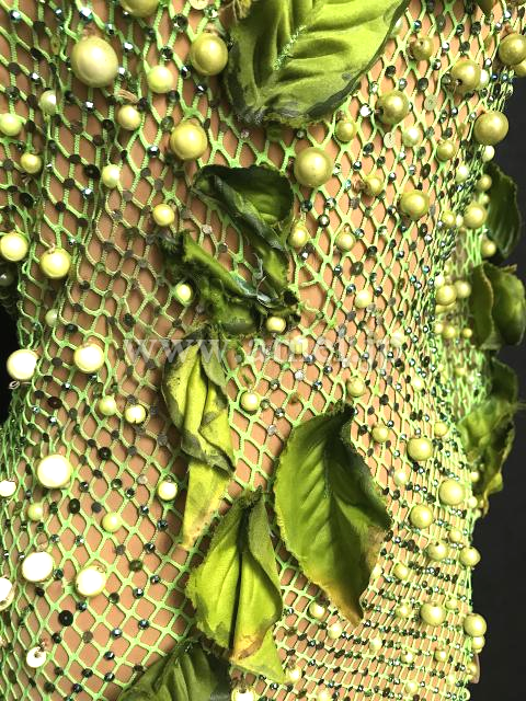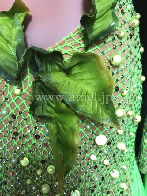 全身が緑のネットの上に石と緑のパールがふんだんについています