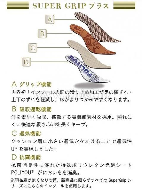 更に進化したSuperGrip プラス+のインソールにはグリップ効果以外に