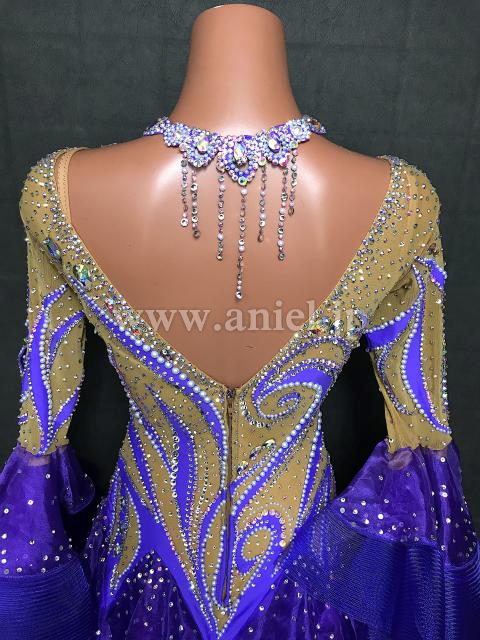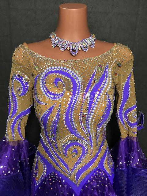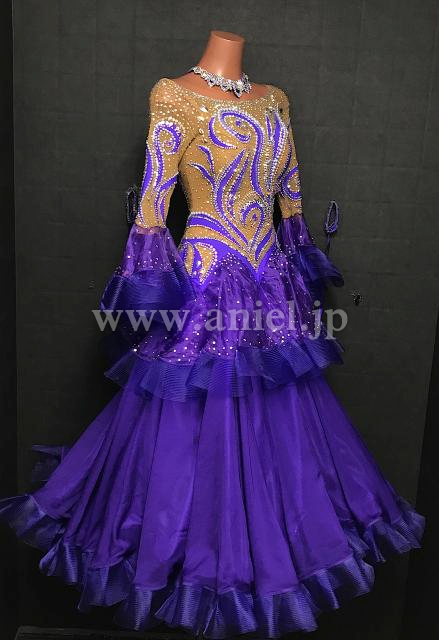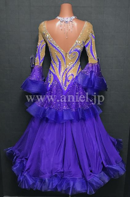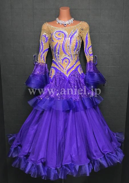 紫とベージュのロングスリーブドレス