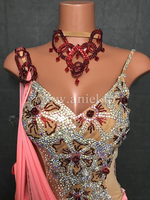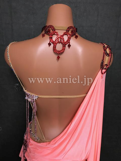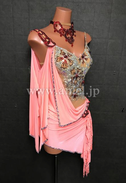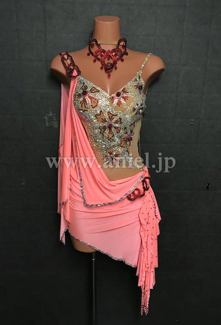 サーモンピンクのミニ丈ラテンドレス
