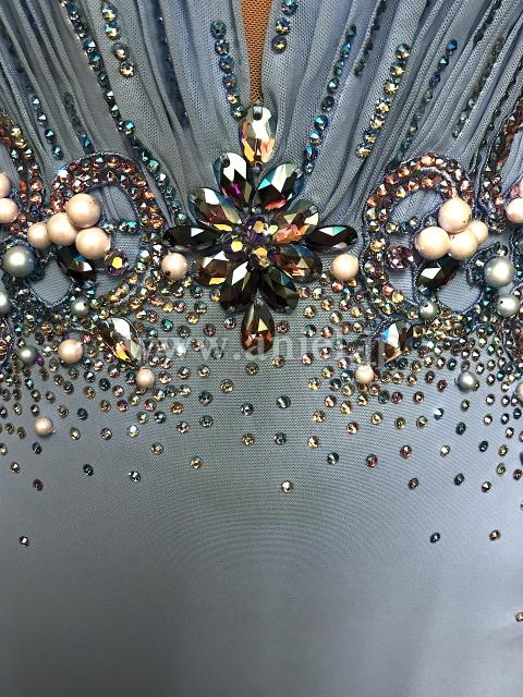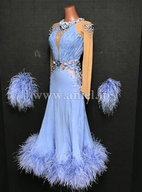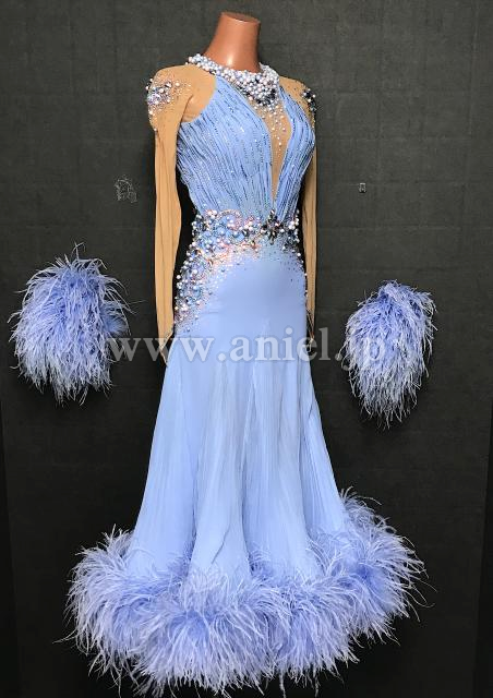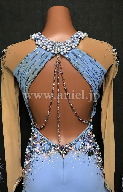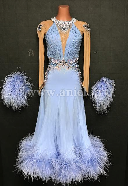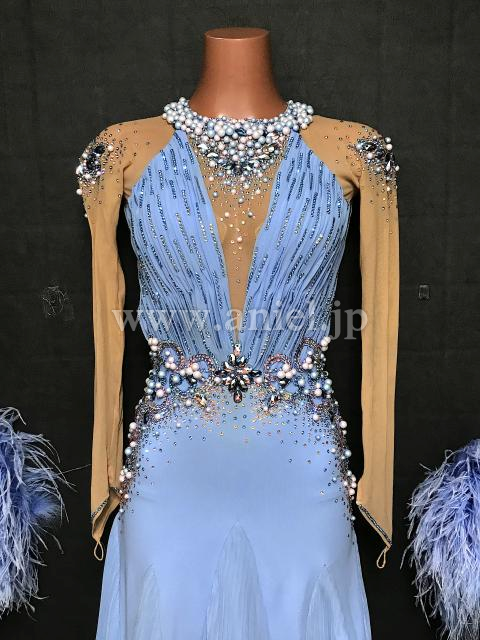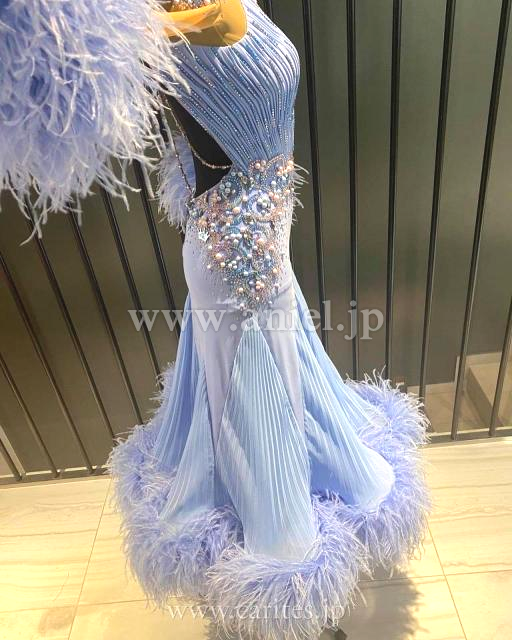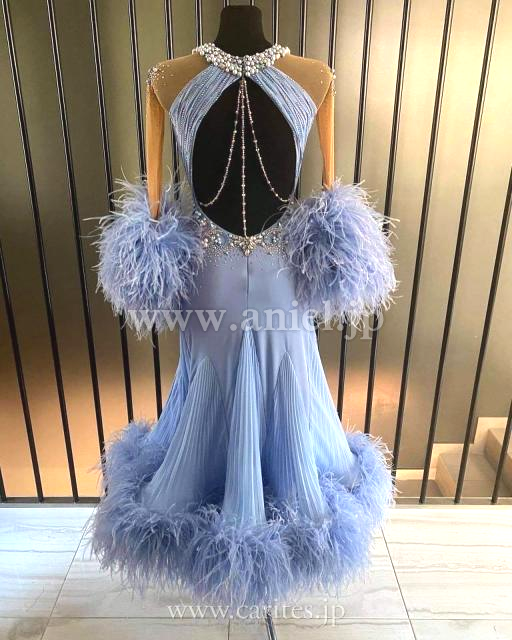 優しいペールブルーカラー。裾と腕にファーがついています。腕のファーは取り外し可能。