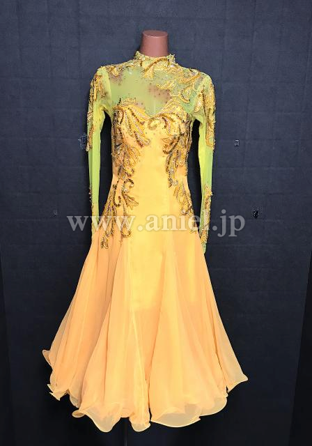 黄色のハイネックロングスリーブドレス