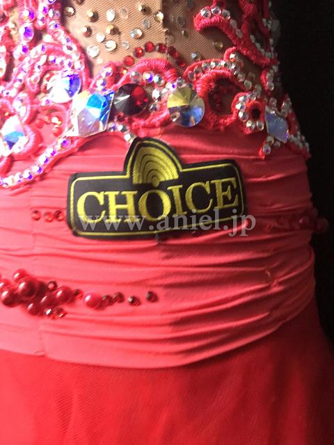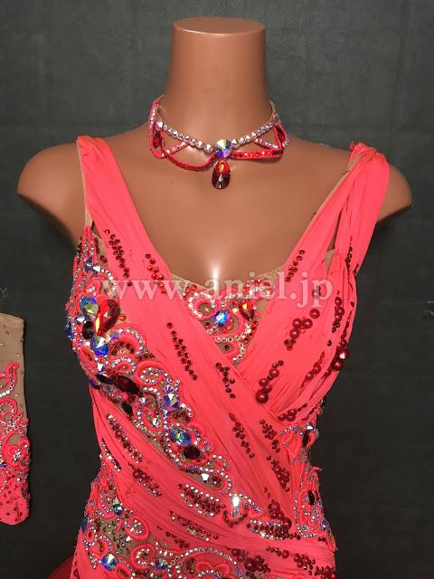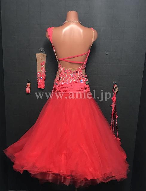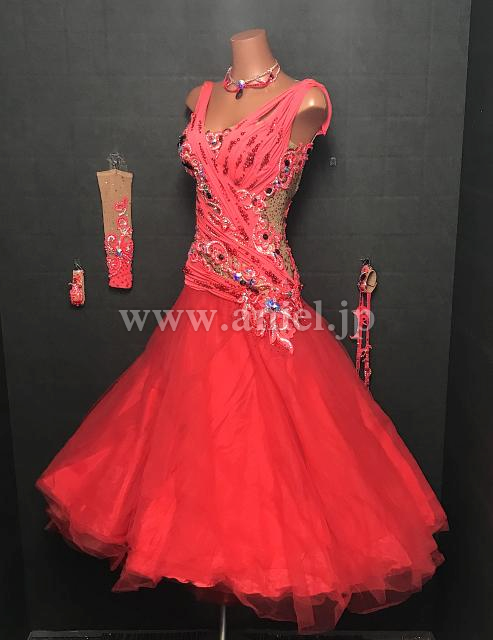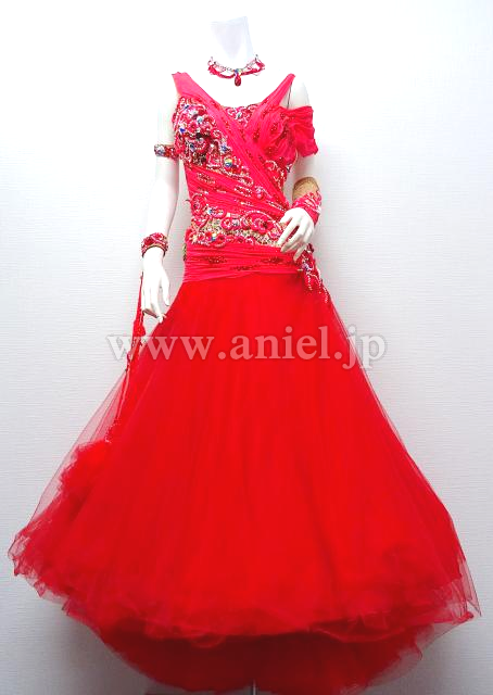 赤のノースリーブドレス。