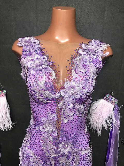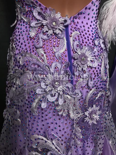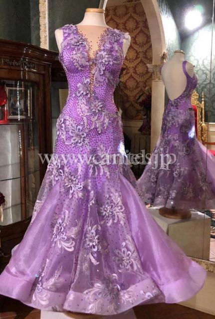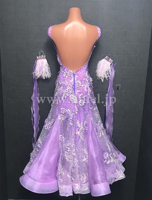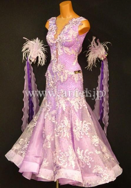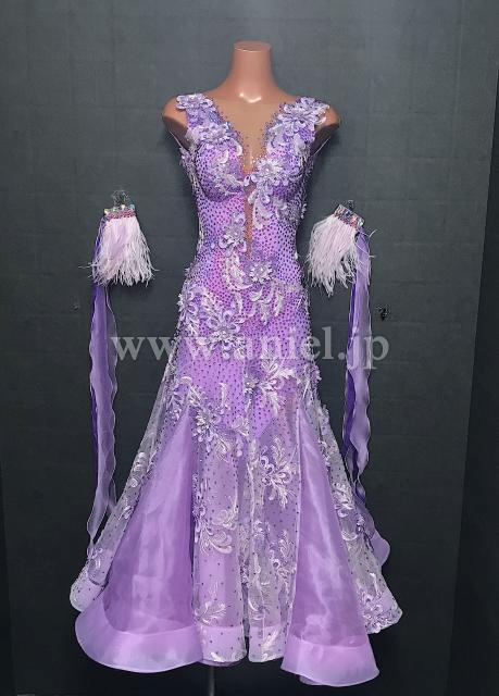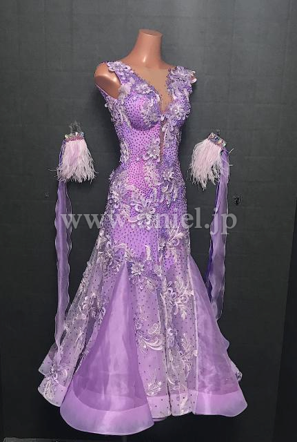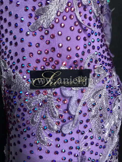上品なライラックカラーのドレス。Silviaらしい美しいレース生地をたっぷり使用しています。