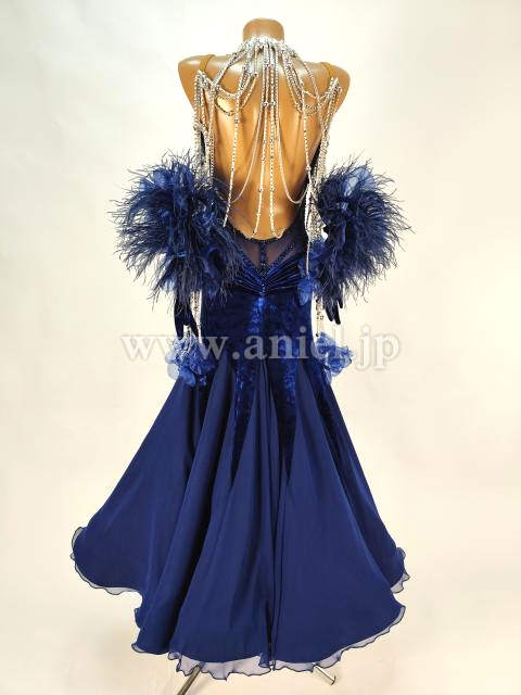 ネックからデコルテのデザインはクリスタルストーンでびっしり豪華な意匠。