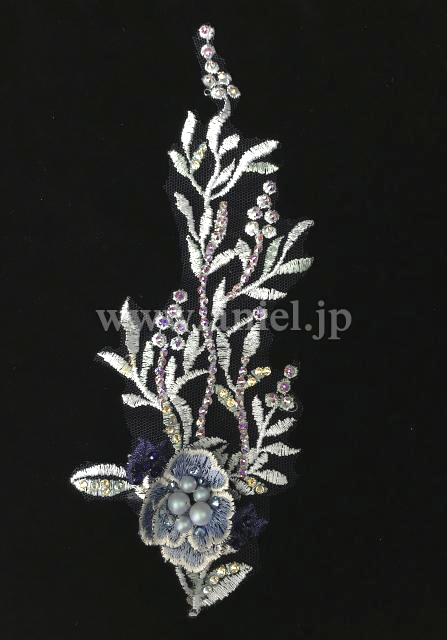 ホワイトのモチーフレースにパールやストーンで繊細が装飾が施されています。