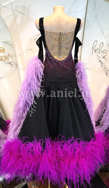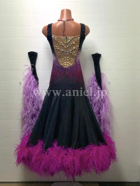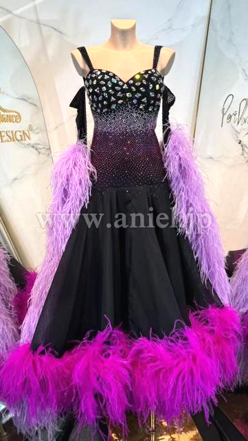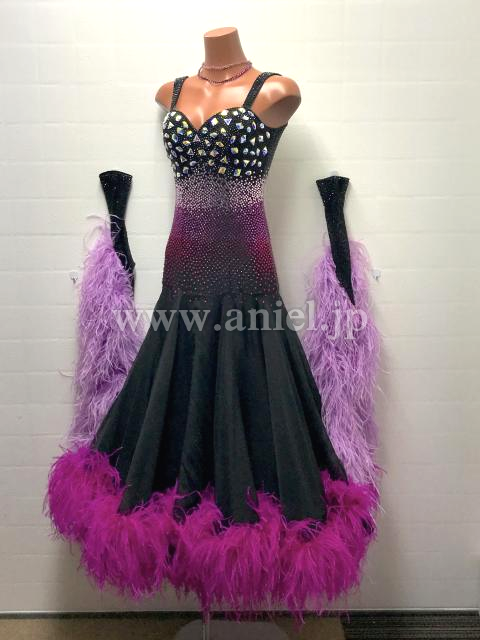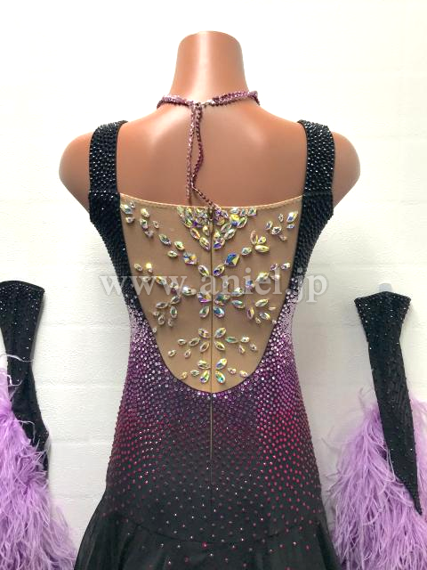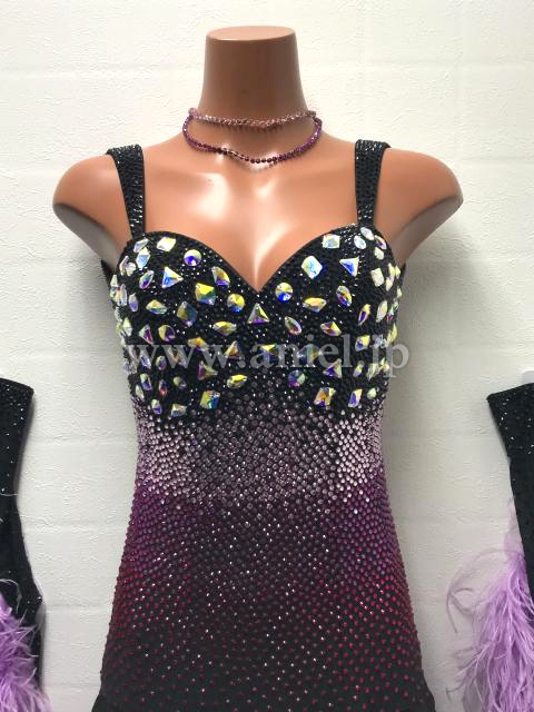 黒のボディにピンクのストーングラデーションが豪華なドレスです。