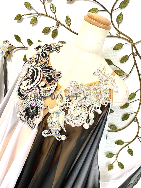ふんわり柔らかいジョーゼット生地を使用したバイカラーのラテンドレス