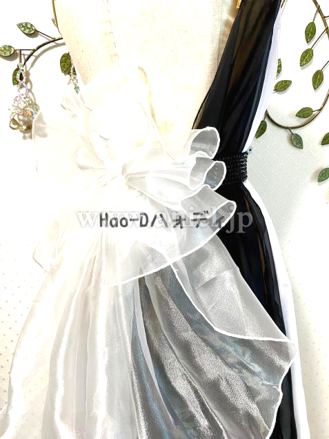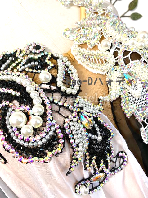 胸元のモチーフには、びっしり装飾したオーロラストーンと大小パールは大変豪華で綺麗に輝く