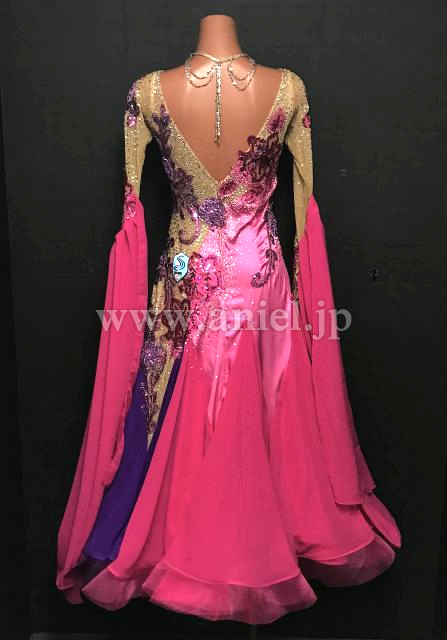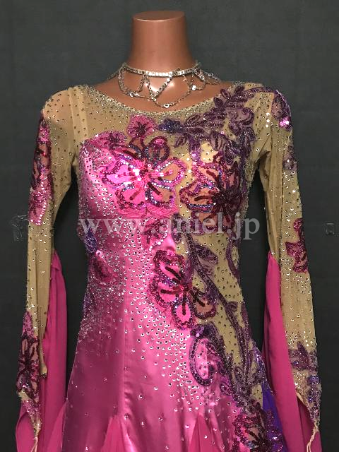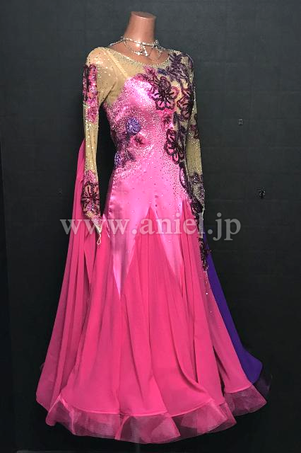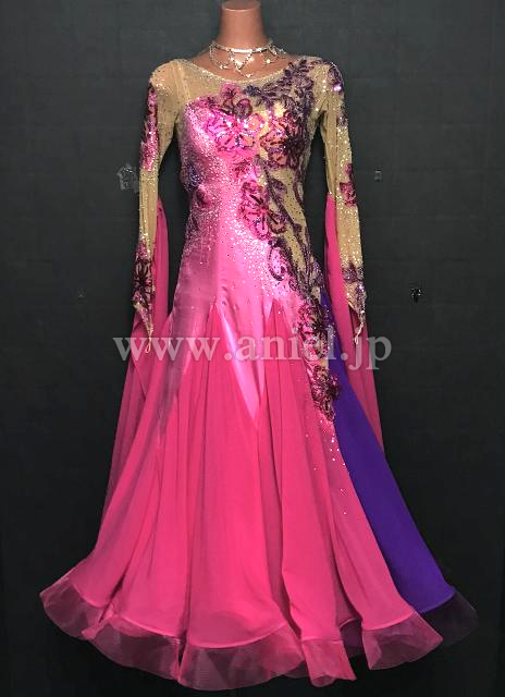 ピンクと紫のバイカラーが華やかなドレス。