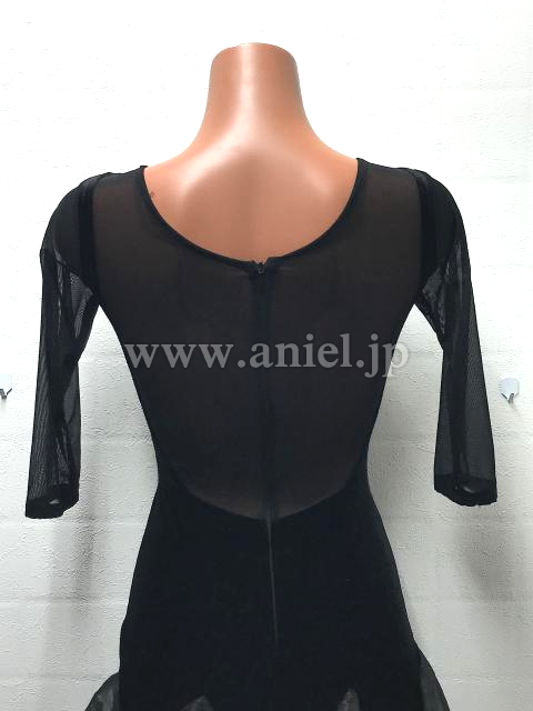 黒ベルベットのシンプルなワンピースドレス。