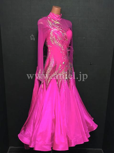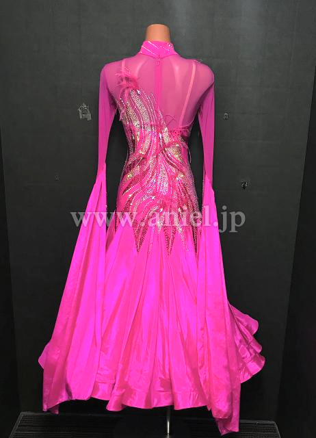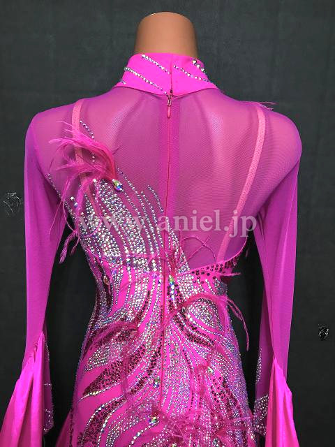 良く目立つ明るいマゼンタピンクにオーロラストーンをびっしり装飾し、キラキラ輝いて大変豪華