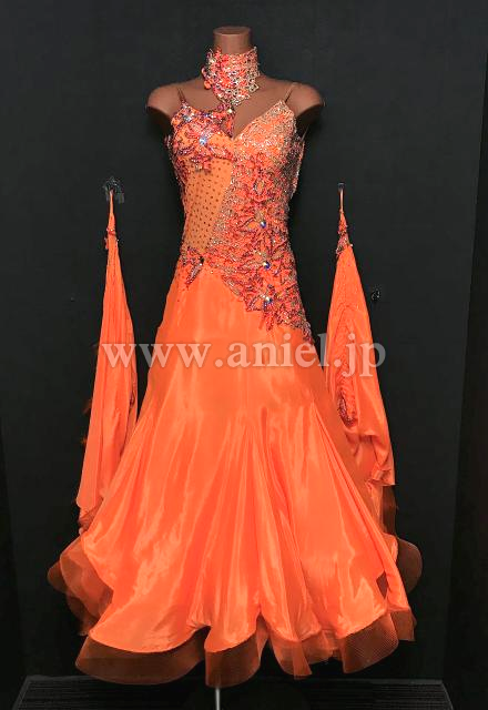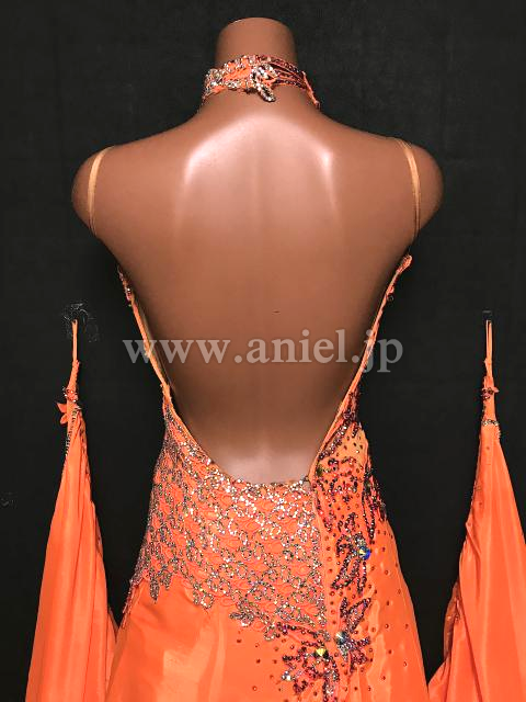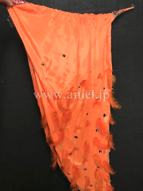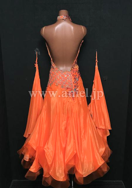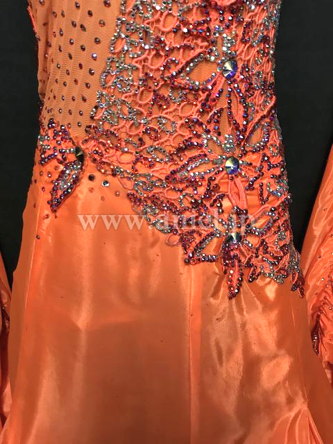 明るいオレンジにレース、ストーンで装飾が施されています。