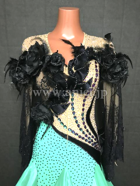 立体のフラワーモチーフが飾られボディに厚みを出してくれます。