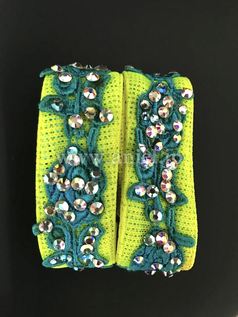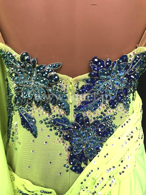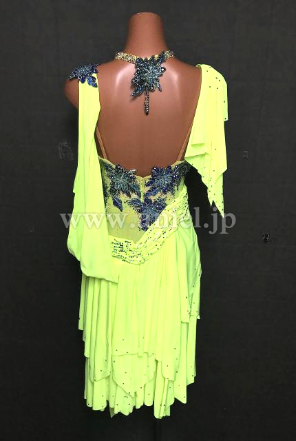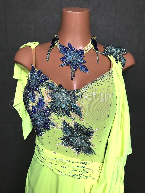 鮮やかな蛍光黄色に青のモチーフレースが映えます。