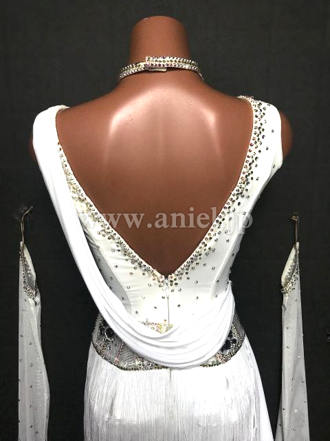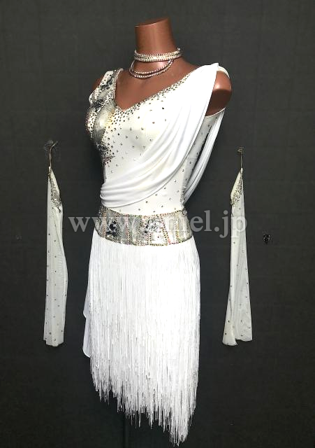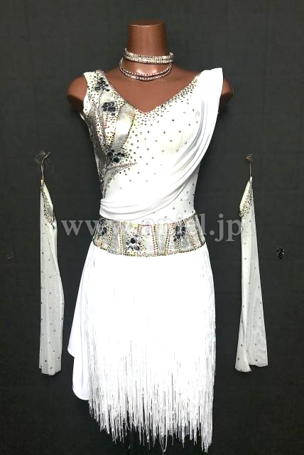 白にシルバーの装飾が輝くドレス。