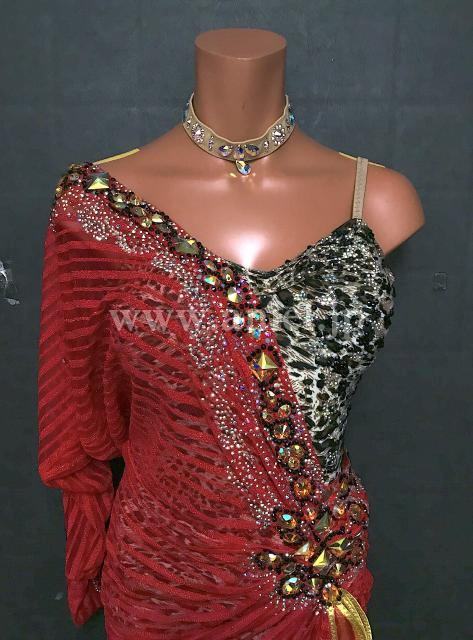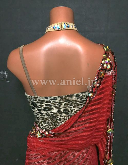 豹柄のワンピース部分が赤のチュールから透けてセクシーです。