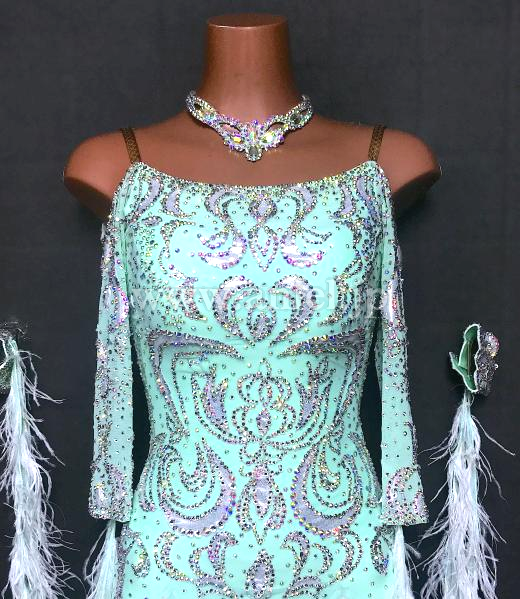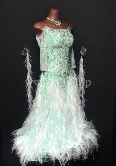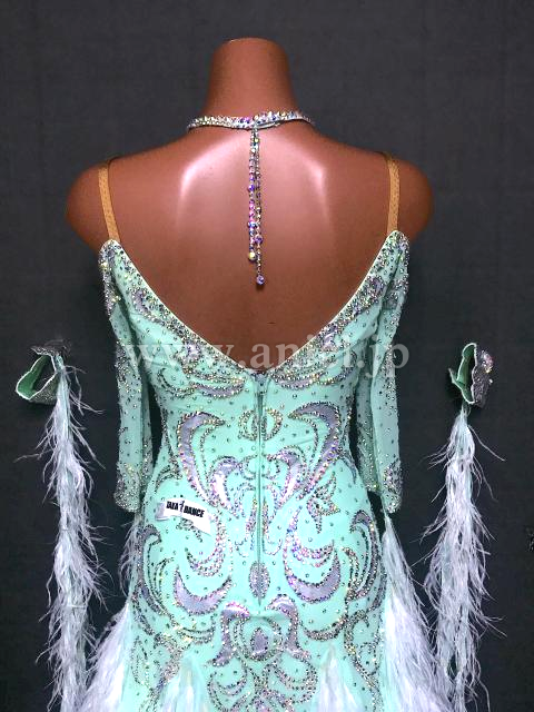 スカートには羽根がたっぷり飾られていてゴージャス。