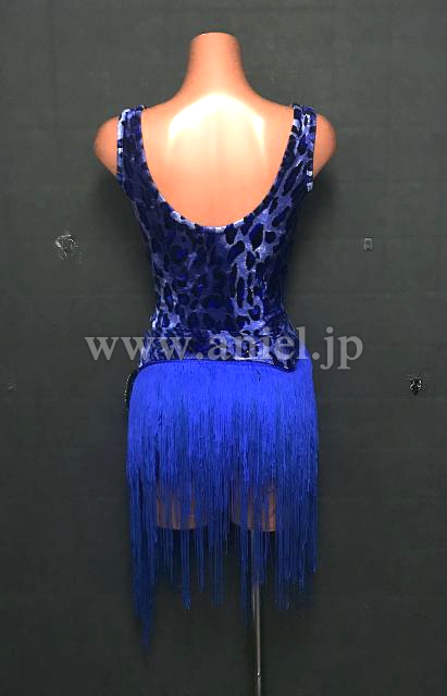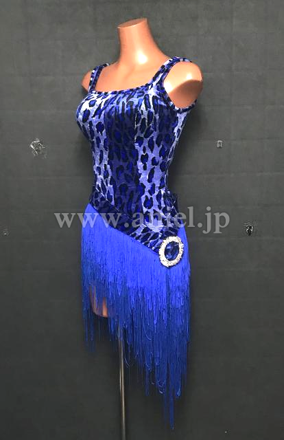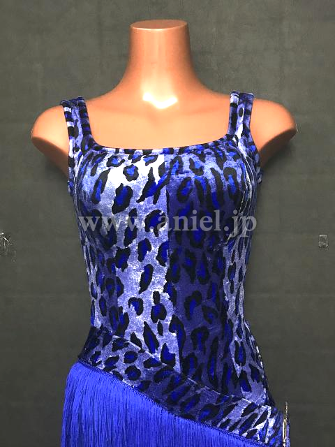 ベロア生地の青の豹柄のボディがおしゃれ。
