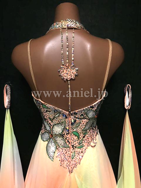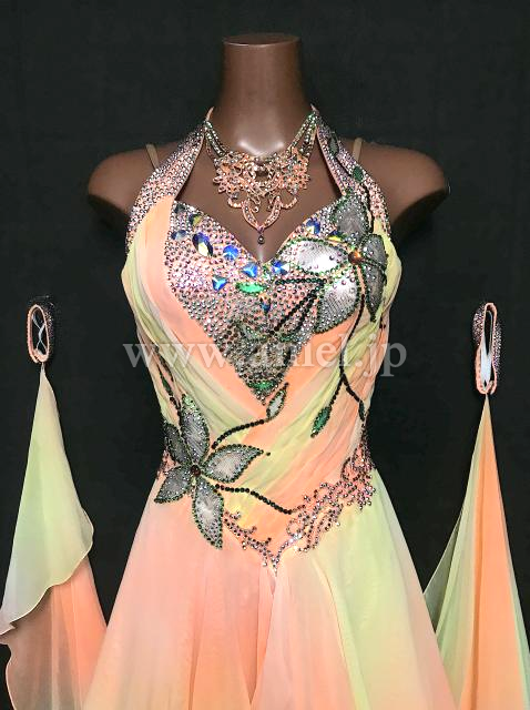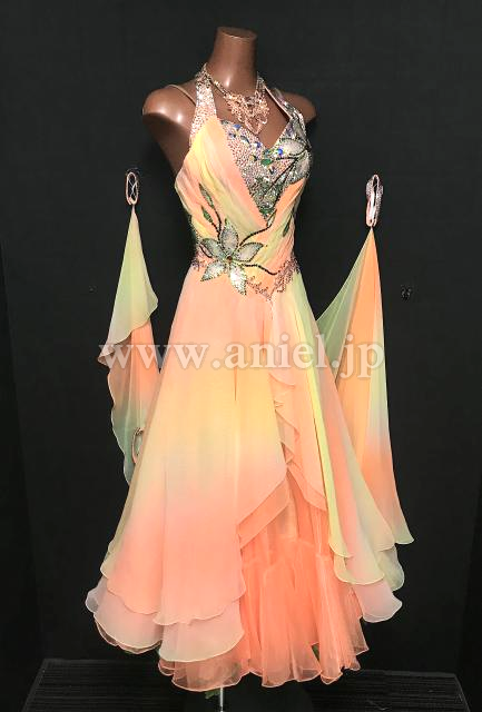 黄色からオレンジのグラデーション生地が美しいドレスです。