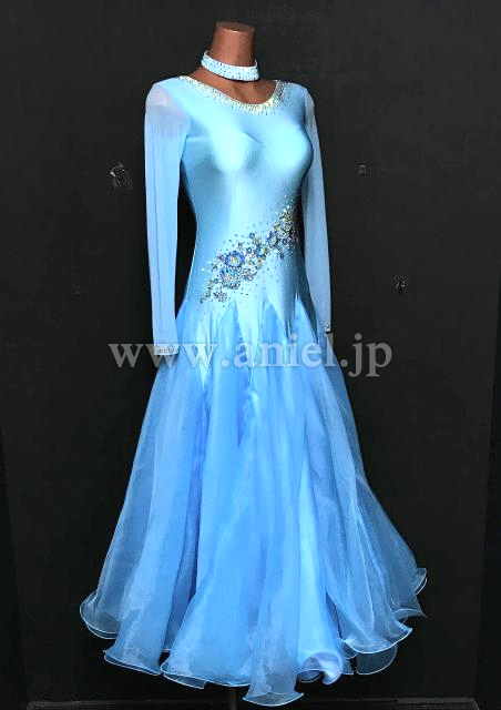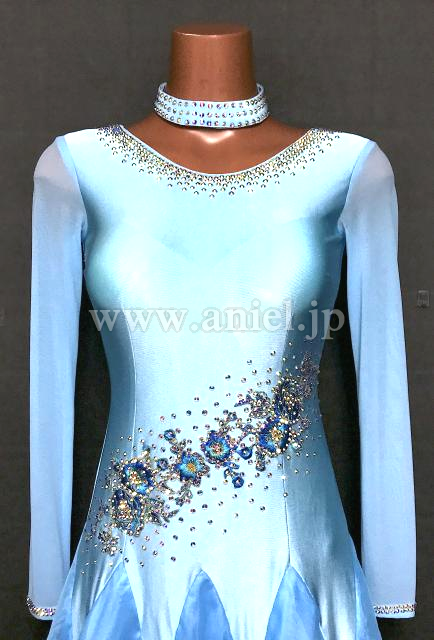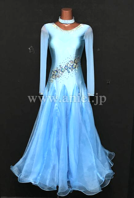 明るい水色のワンピースドレス。