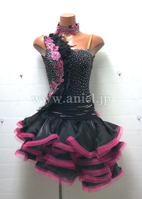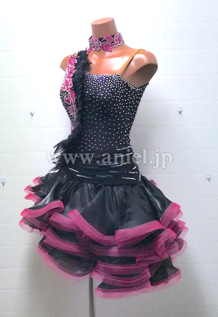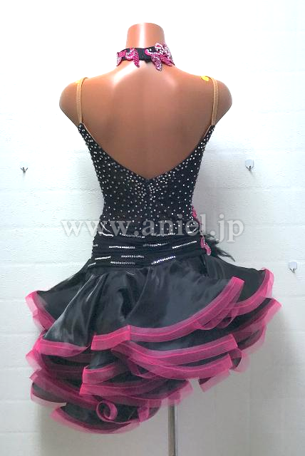 黒にピンクのホースヘアのラインが目立つドレスです。