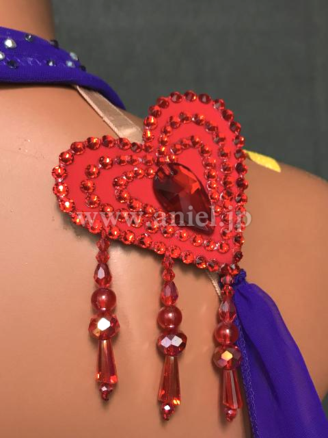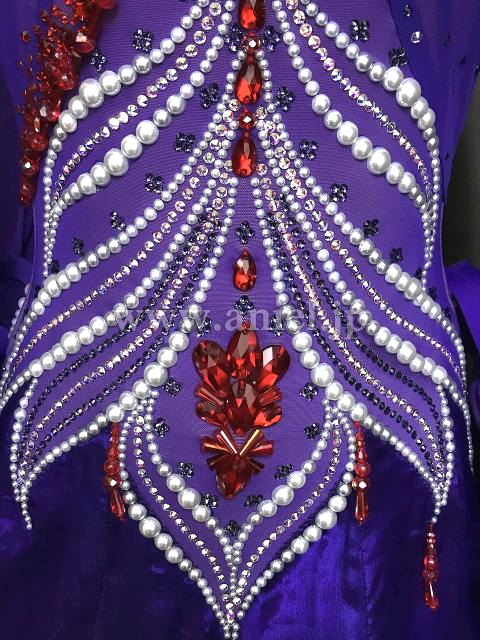 紫のボディにパールや赤のストーン、クリスタルストーンで美しい模様が描かれています。