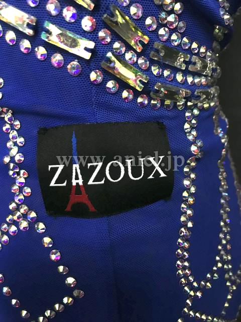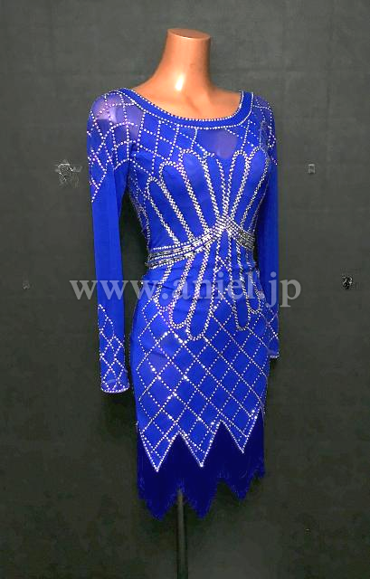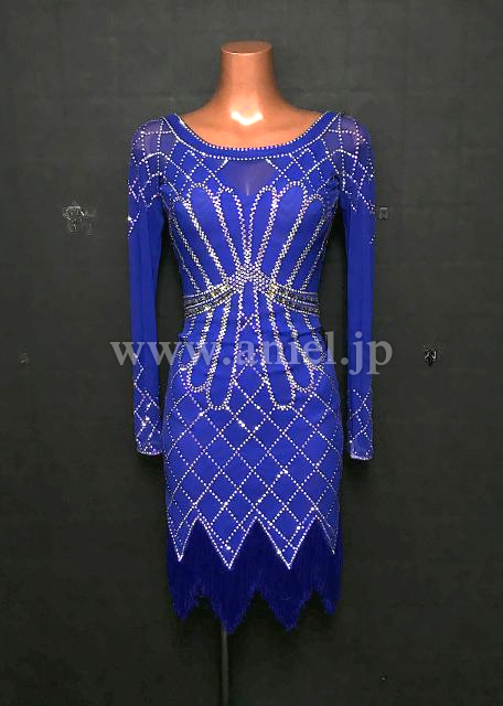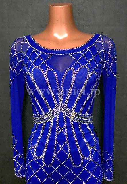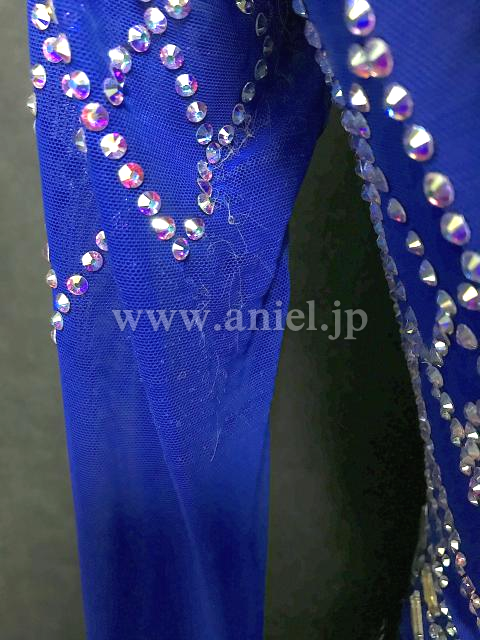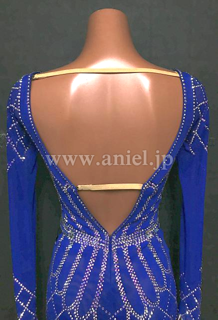 青のボディにオーロラストーンのラインが映えるドレスです。
