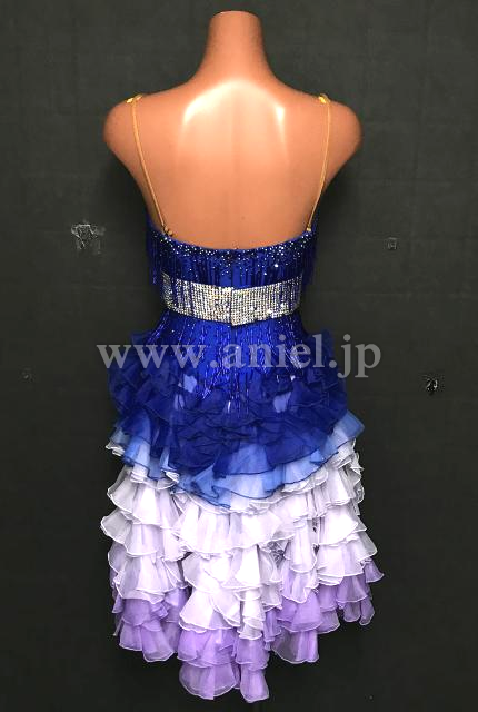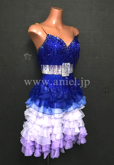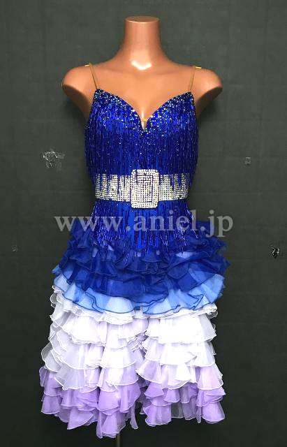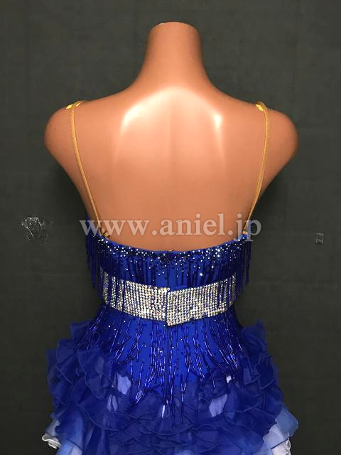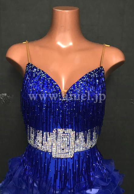 ロイヤルブルーのボディにビーズフリンジ沢山ついたドレスです。