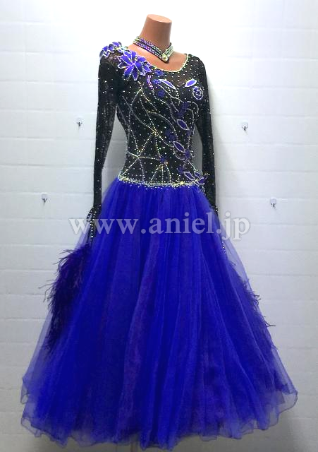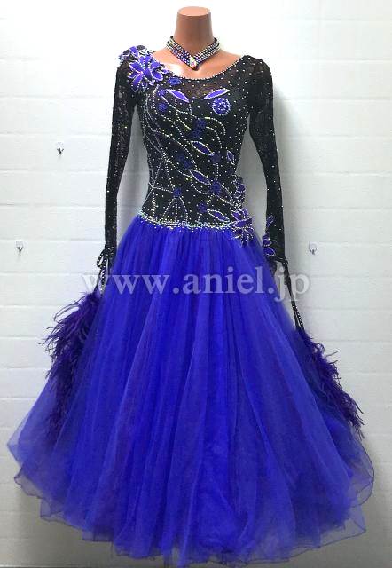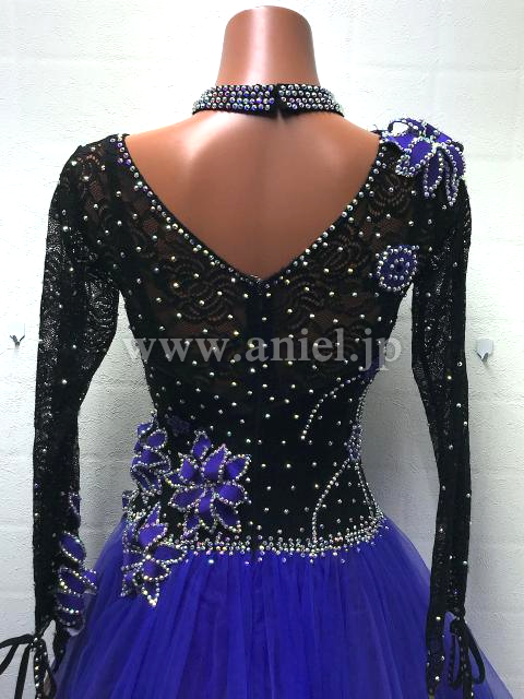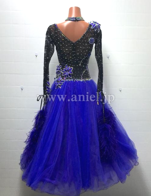 黒のボディに紫のチュールスカートがボリュームたっぷりのドレス。