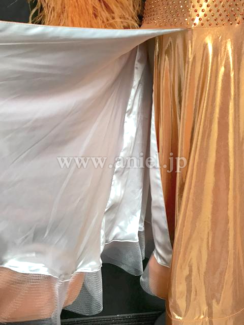 スカート1枚作りの裏地にパッと翻った時に見える白のインナースカートが重ねられています。