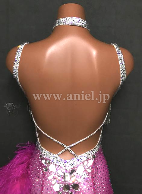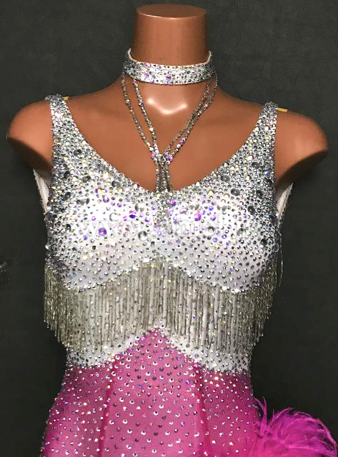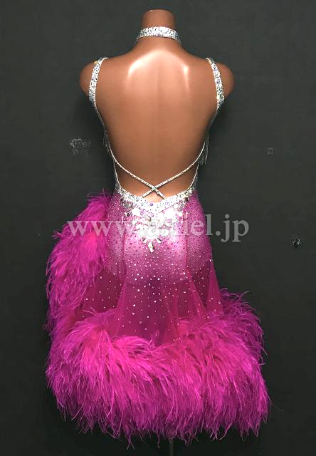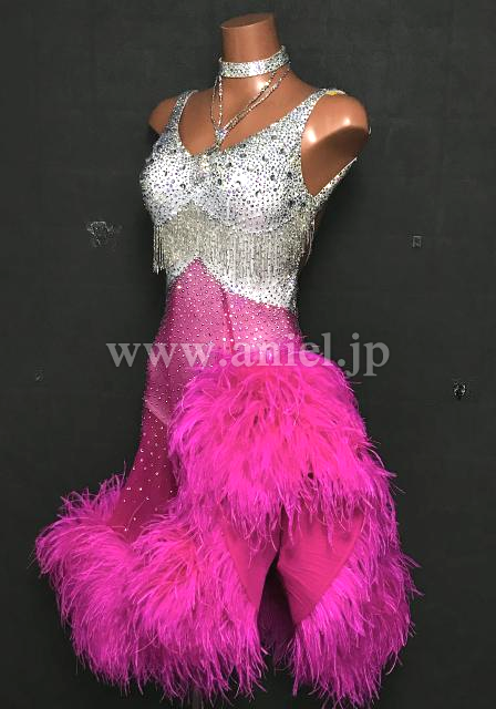 シルバーのトップに鮮やかなピンクのスカートがフロアで映えるドレスです。