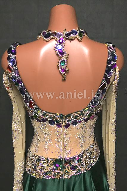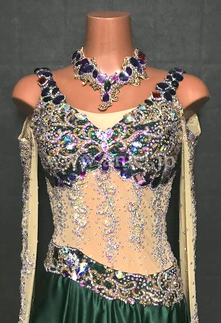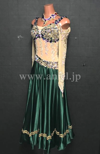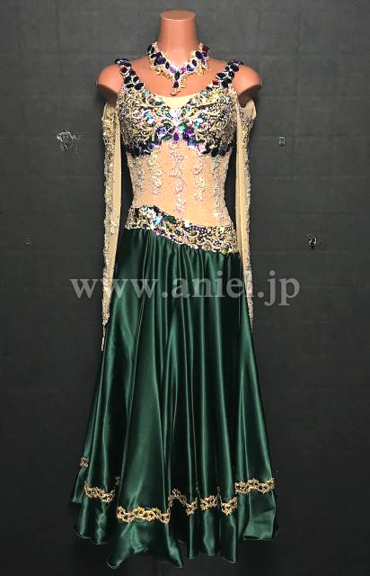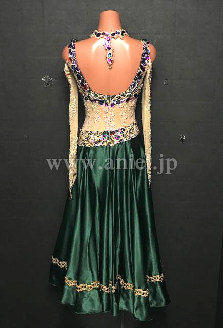 深緑のサテンスカートが上品なパソドレス。