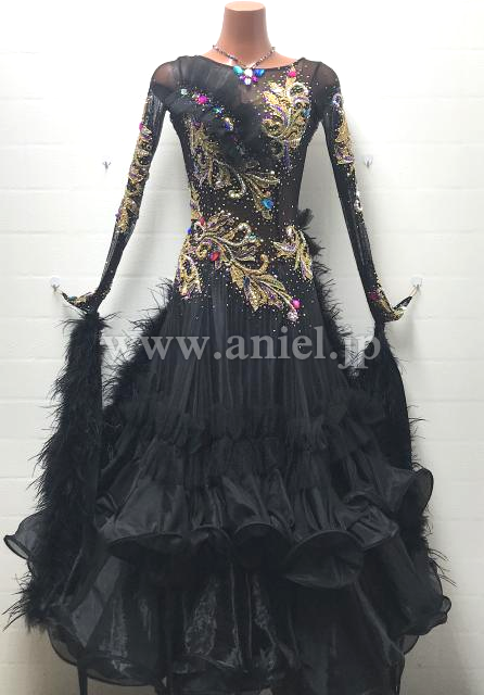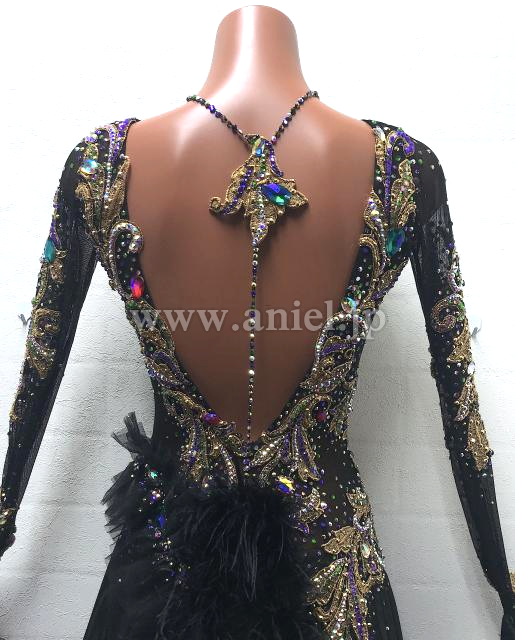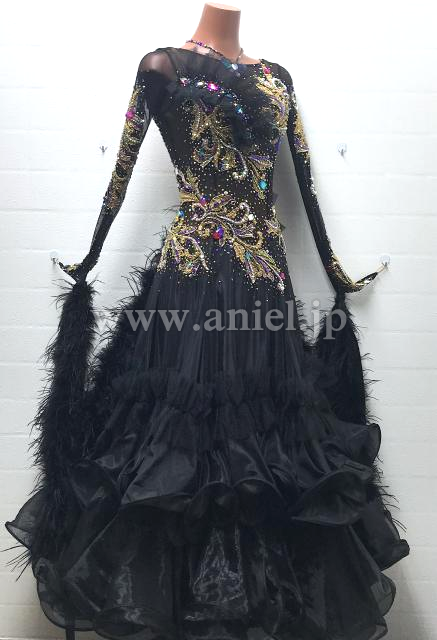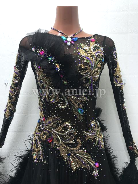 黒ボディにゴールドモチーフがゴージャスなイメージのドレスです。