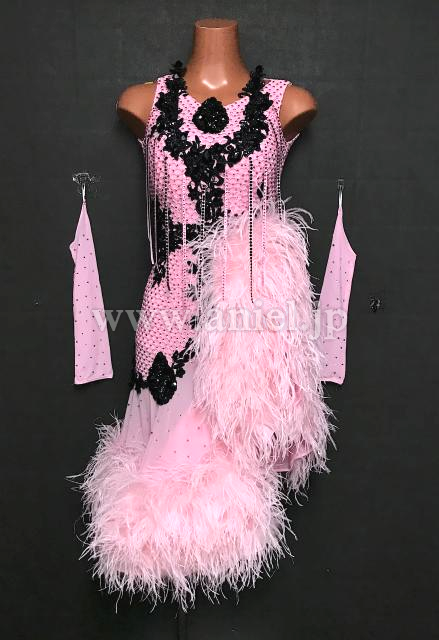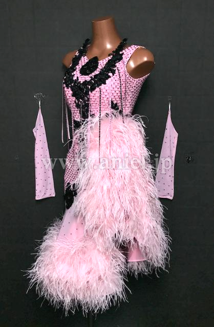 ピンクの可愛らしいファースカートのドレスです。