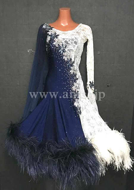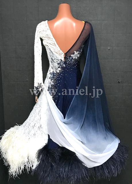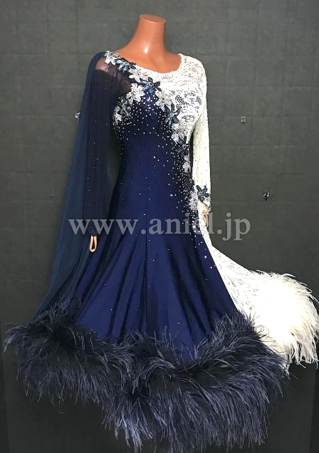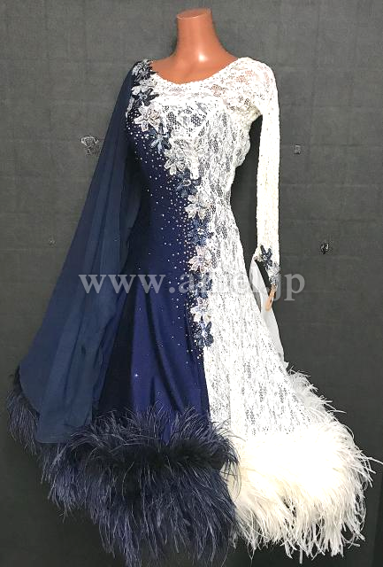 白のレース生地が美しく、スカートの裾にはファーたっぷりでボリュームがあります。