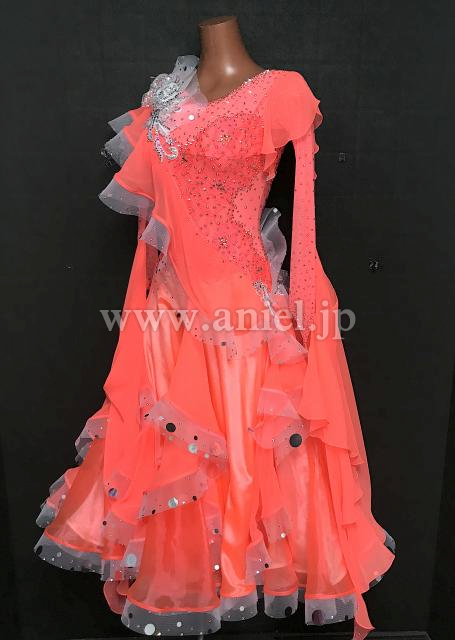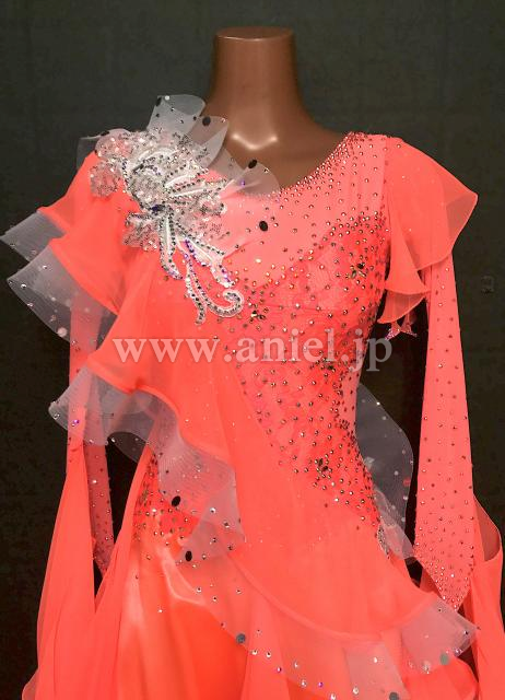 明るいオレンジカラードレス。