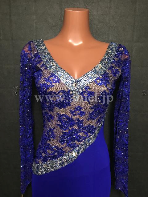 美しいレース生地のボディと胸元、腰回りはストーンびっしり。